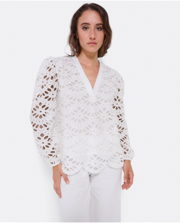 Blusa Escote Pico Guipur